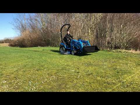 Brugt kompakt traktor med både frontlæsser og plæneklipper 152 cm, Leasing kun kr. 1.553,- + moms pr. mdr. Aftagelig frontlæsser med skovl, parallelføring hurtigskift. KUN 40 timer, Hydraulisk hæve/sænk på plæneklipper. 25 HK Yanmar diesel. Fold bar bøjle. Stor kraftoverskud, tre punts ophæng i standard format. Stort udstyrsprogram. Industri dæk eller plæne dæk.